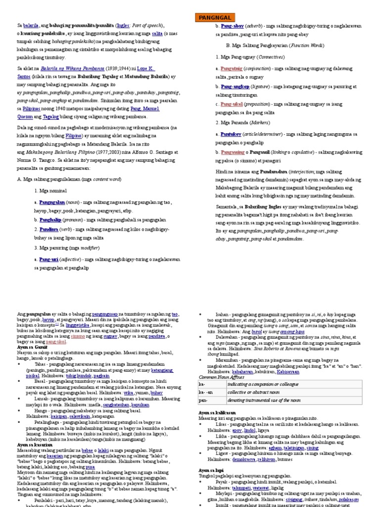 Bahagi ng pananalita sa balarila, ang bahagi ng pananalita/panalita (ingles: May walong(8) bahagi ng pananalita at ito ang ating tatalakayin sa artikulong ito. Ipinakikita ng iyong pananalita kung ano ang nasa loob mo. Pangngalan (noun) mga uring pansemantika 1. Kadalasang nagsisimula ito sa malaking titik.